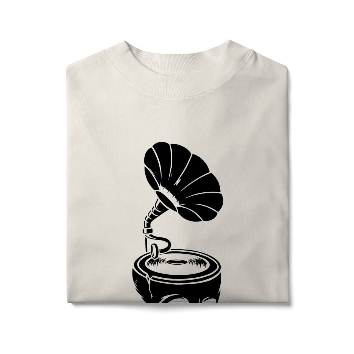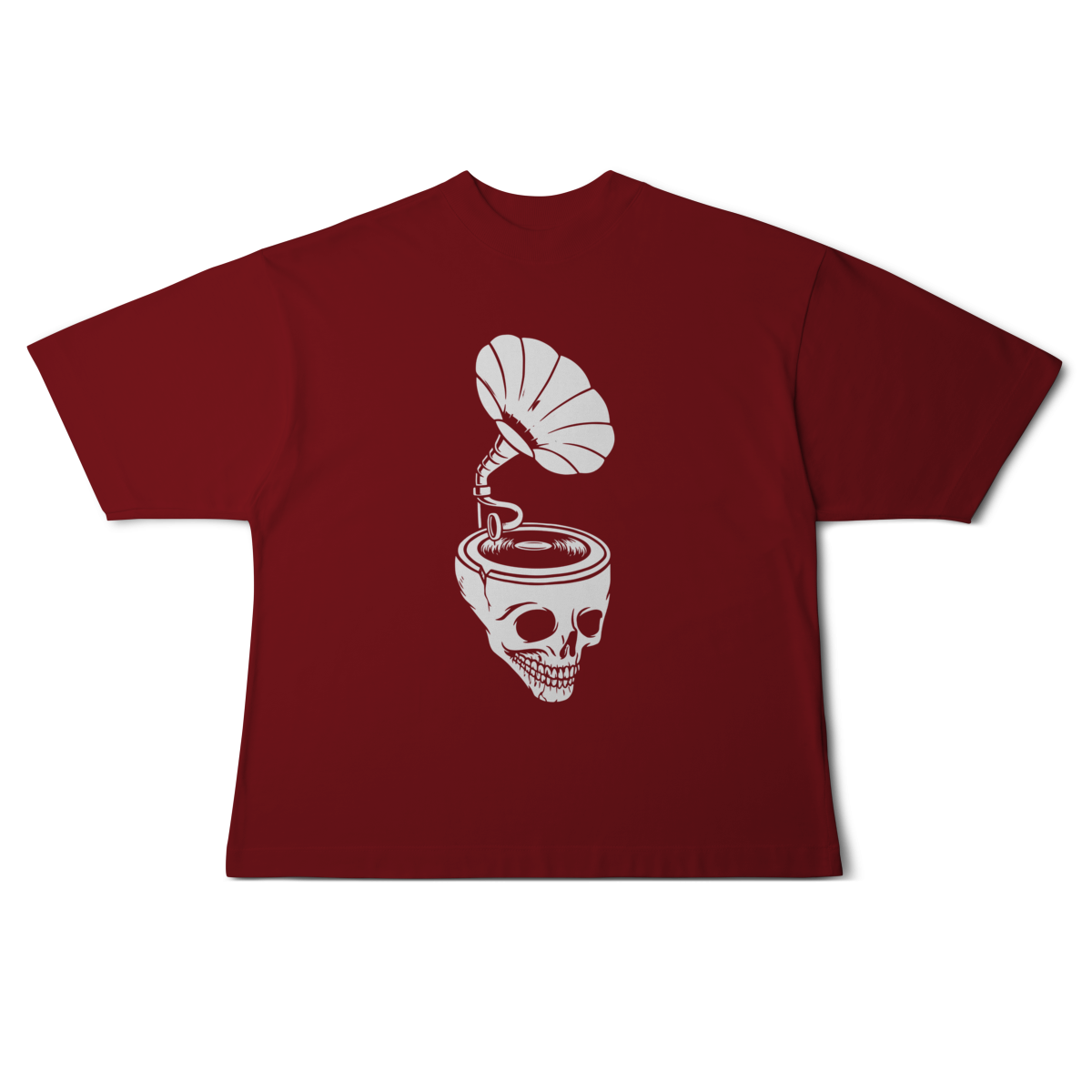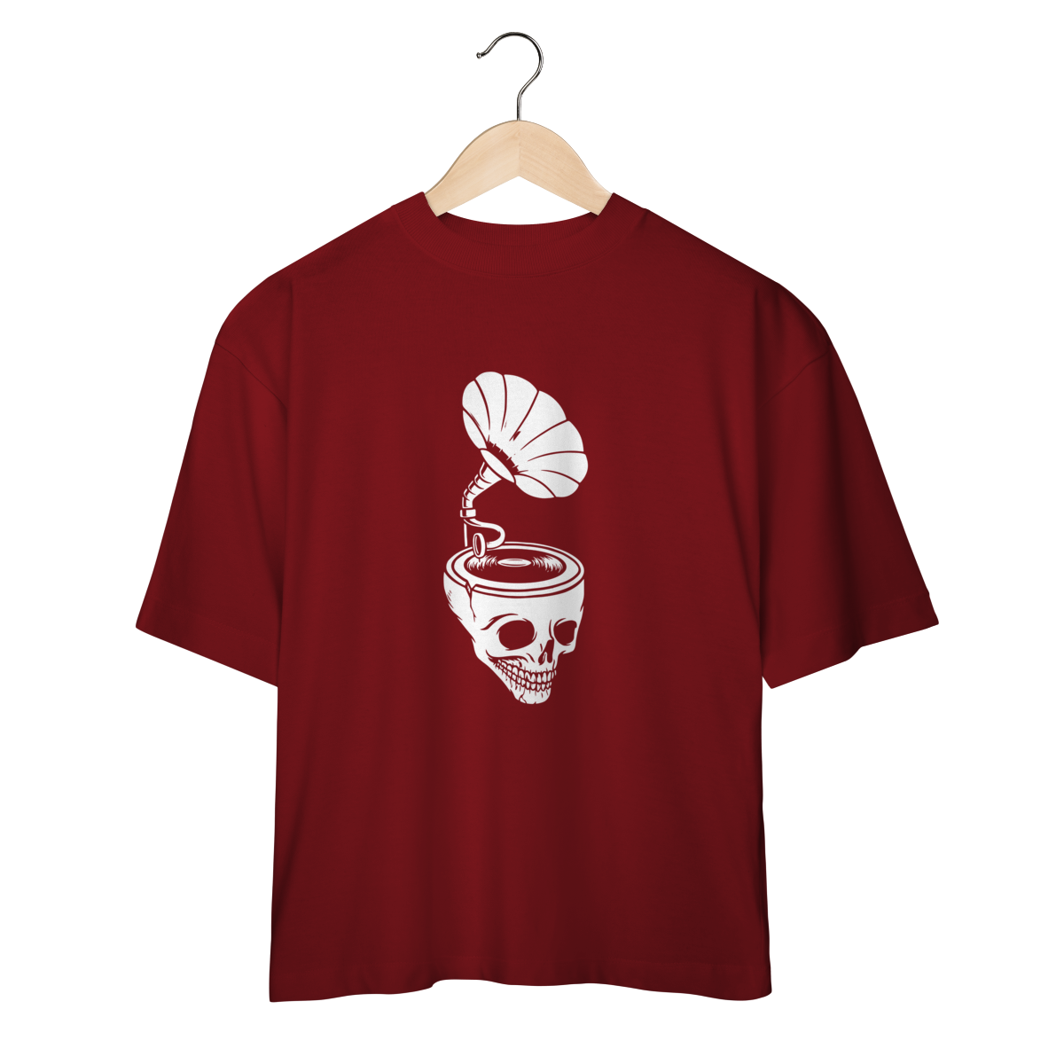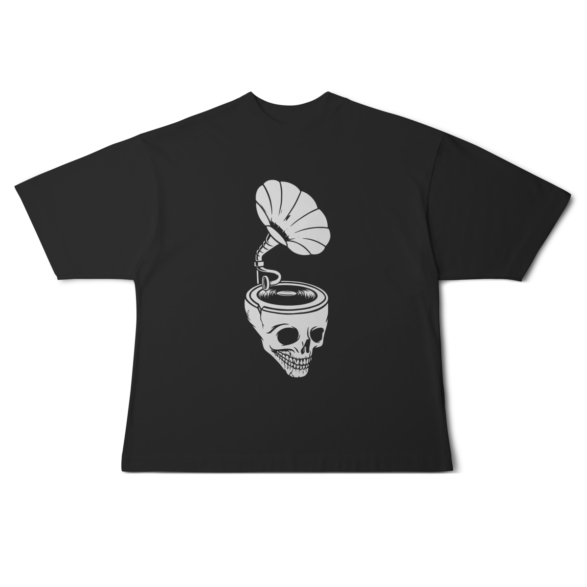 A Camiseta Overized Skull & Sound representa o contraste entre o analógico e o eterno: um gramofone emergindo de um crânio, tocando as frequências que nunca morrem.