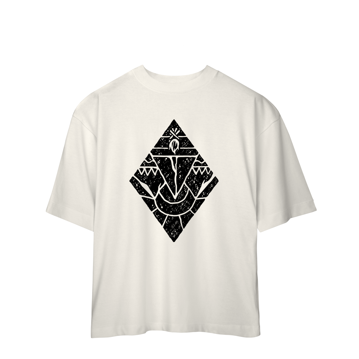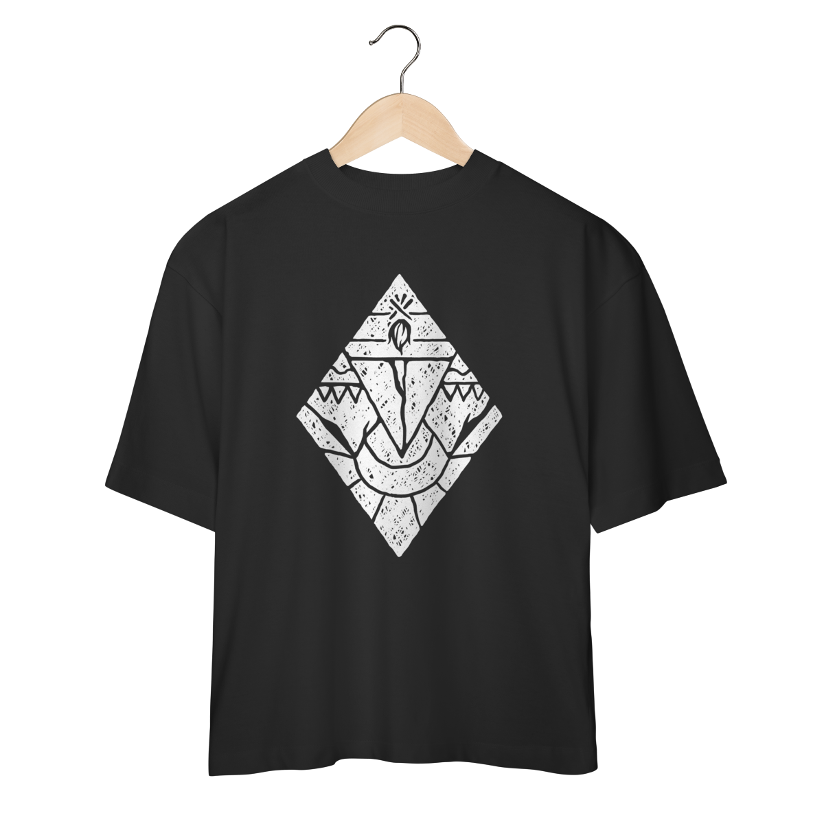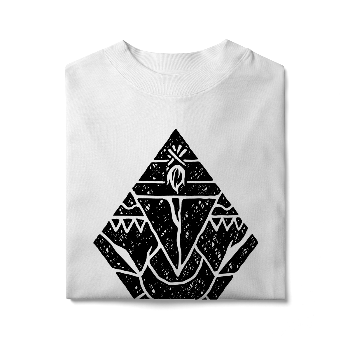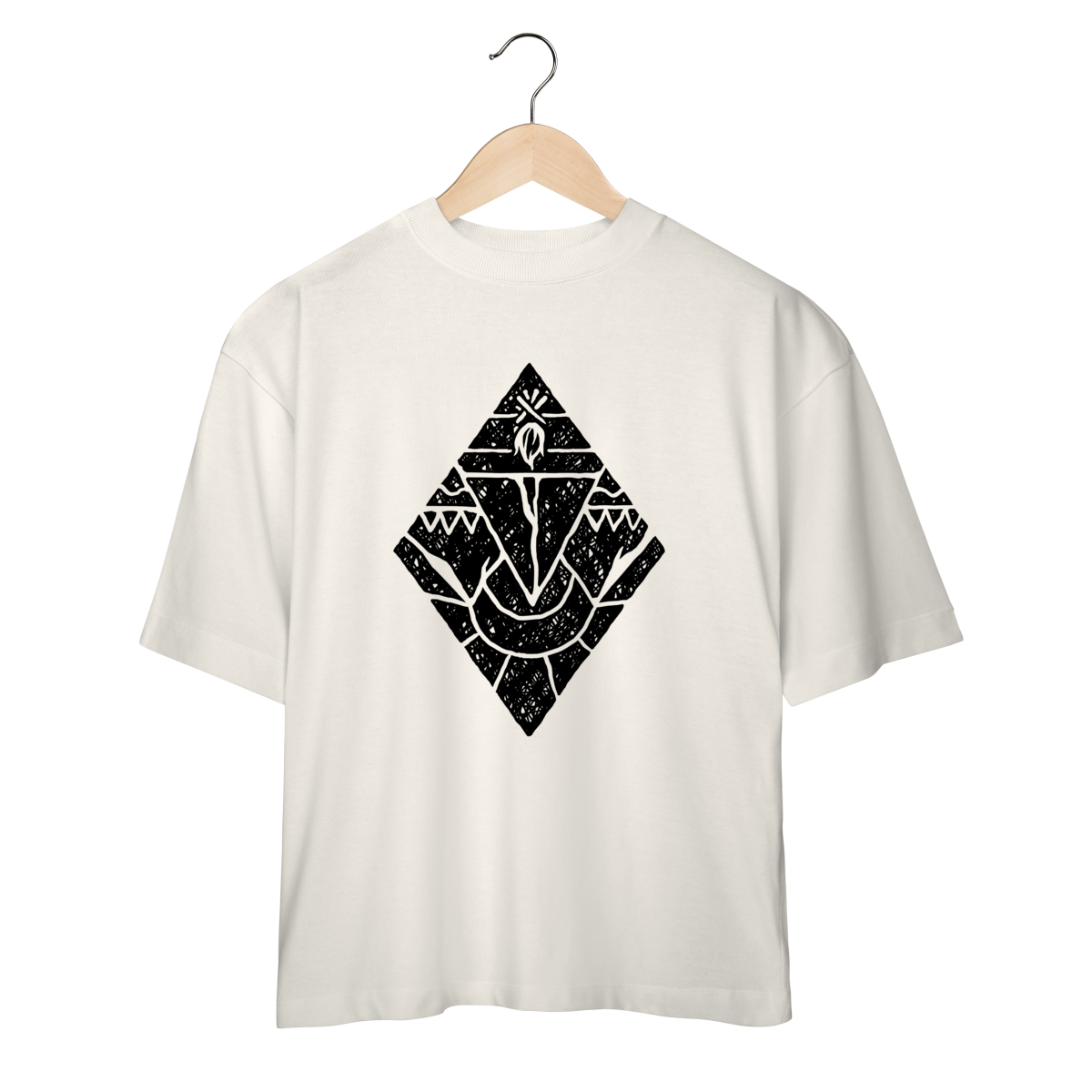 Seu design é um símbolo cravado no tempo, um diamante sagrado que pulsa energia, equilíbrio e mistério. A estampa contrasta profundamente com o tecido, criando um visual minimalista e ritualístico.