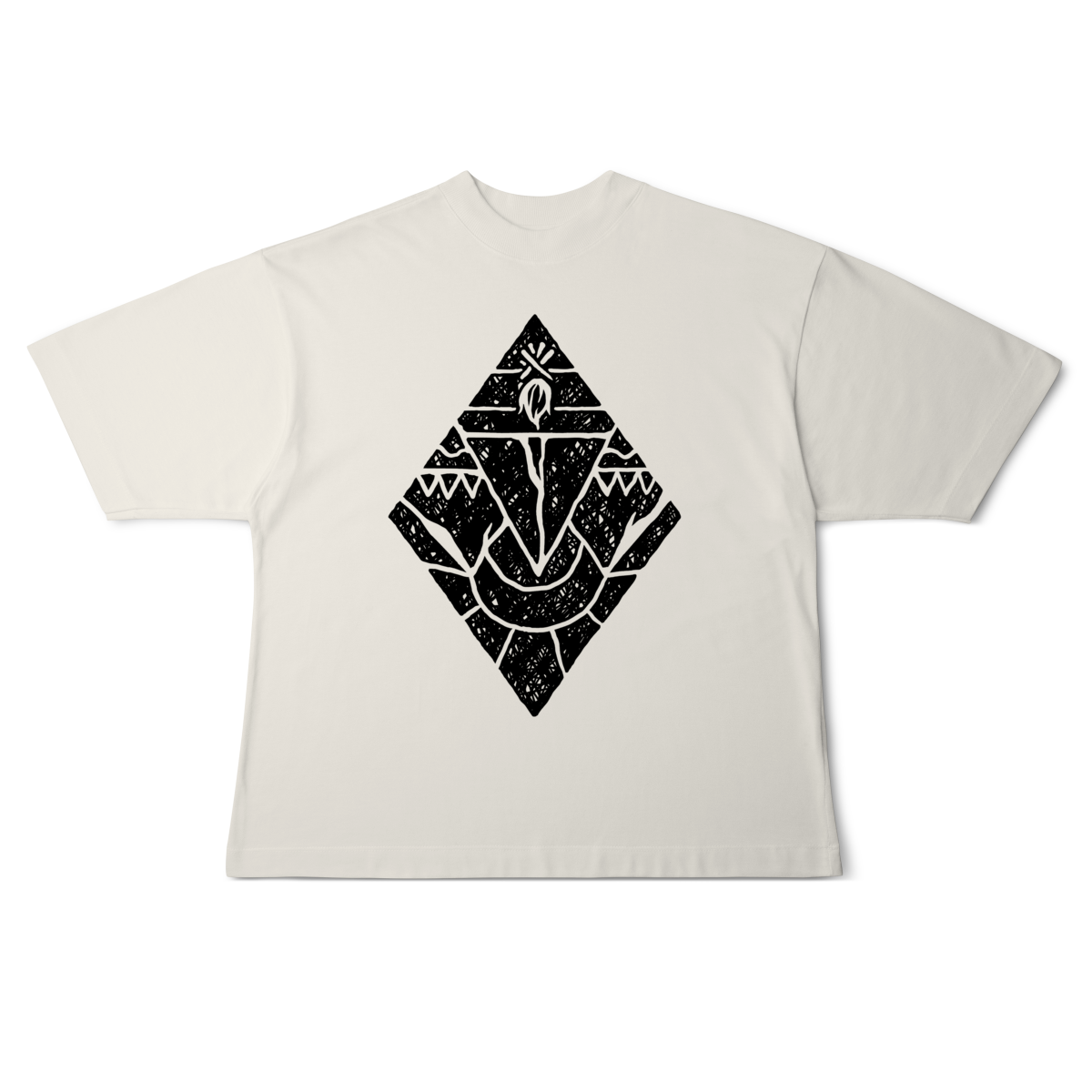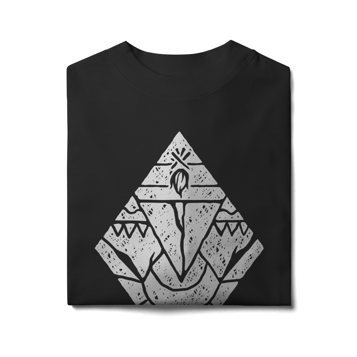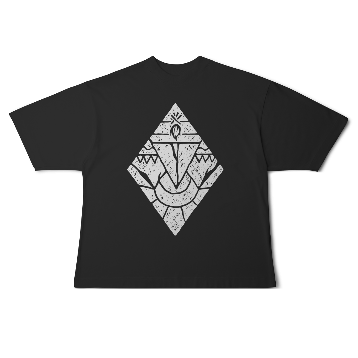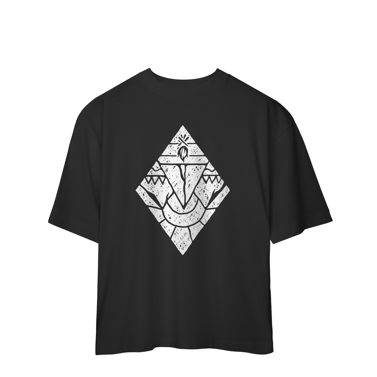 Seu design é um símbolo cravado no tempo, um diamante sagrado que pulsa energia, equilíbrio e mistério. A estampa contrasta profundamente com o tecido, criando um visual minimalista e ritualístico.